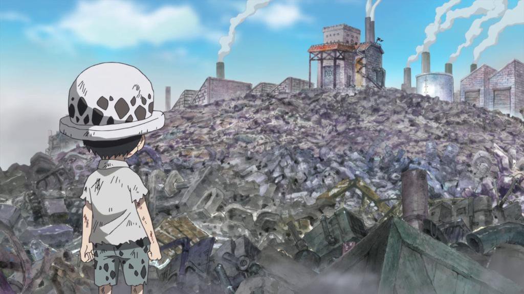 Trafalgar D. Water Law ha conosciuto l’infelicità, la malattia, il dolore e la morte fin da bambino, e la sua triste storia a tratti ricorda quella di Nico Robin e della sua terra natia, Ohara, di cui vi parlerò in seguito. Trafalgar D. Water Law nacque a Flevance, meglio conosciuta come la Città Bianca per via della grande presenza del piombo ambrato, che qui veniva estratto in enormi quantità e che aveva colorato di bianco il territorio circostante e la città stessa, poiché sia le abitazioni che le strade erano state costruite con questo materiale.