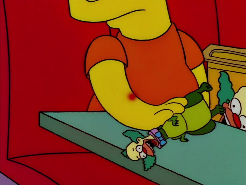 Il contagio avviene, in maniera analoga a quanto visto nella puntata Marge in catene, a causa dell’acquisto, questa volta da parte del piccolo e pestifero Bart Simpson, di un giocattolo di Krusty che viene prodotto in Cina.