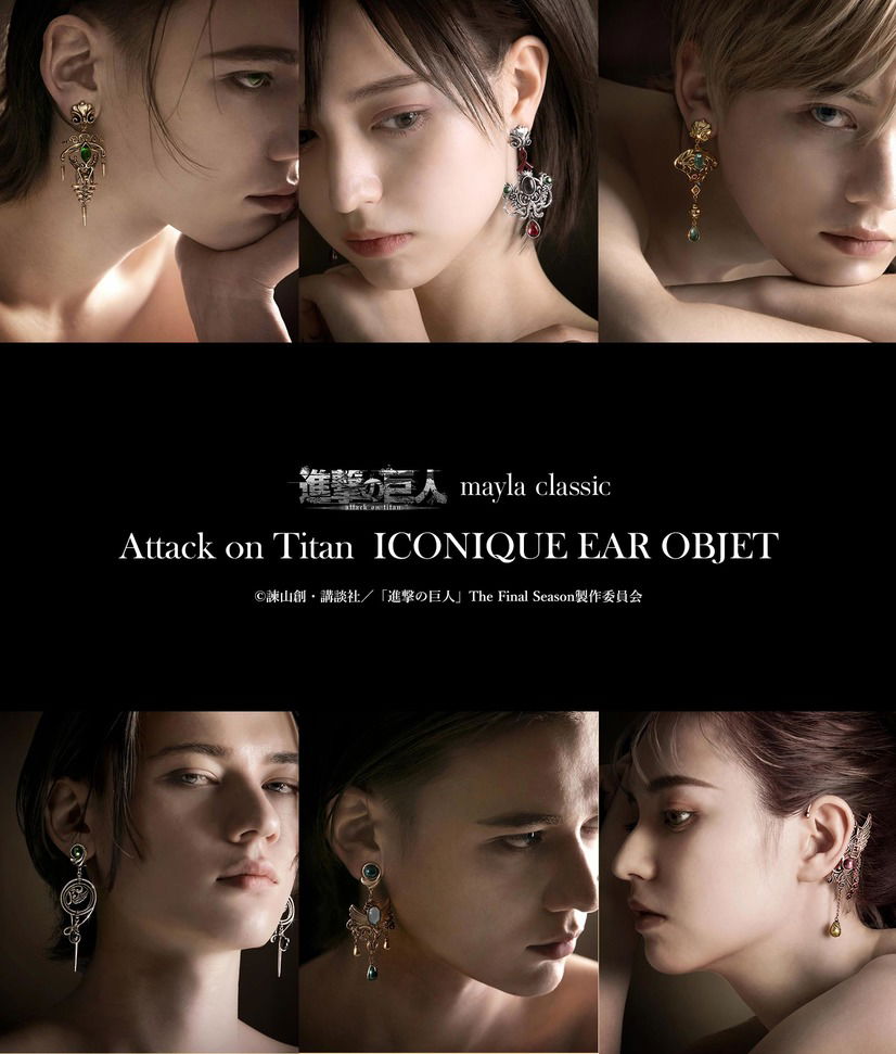 Come riportato originariamente dalla fonte principale, Mayla Classic sta accettando gli ordini per sei modelli di orecchini in edizione speciale basati sui personaggi preferiti dai fan; il set di Eren presenta un design scheletrico, quello di Mikasa richiama la sua iconica sciarpa e la combinazione di colori oro-blu di Armin riflette il colore dei suoi capelli e degli occhi. Gli orecchini di Levi incorporano le Ali della Libertà nel loro design, quelli di Hange fanno riferimento ai suoi occhiali e il look complessivo di Erwin sfoggia una combinazione di colori sobria.