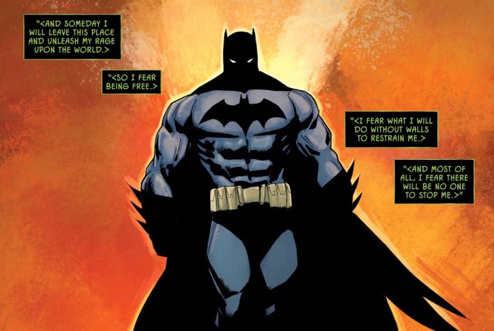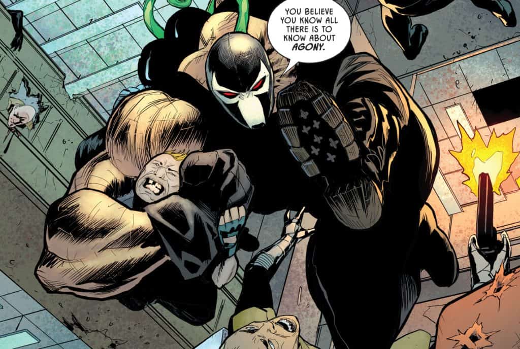 Non poteva che chiudere l’albo il villain del momento, che tanto ha fatto soffrire il nostro Cavaliere Oscuro in quest’ultimo periodo: stiamo parlando ovviamente di Bane, il feroce quanto machiavellico ammasso di muscoli di Santa Prisca. Come tutti sappiamo, Bane è cresciuto all’interno una prigione di massima sicurezza, subendo abusi e torture di ogni tipo, e lo scafato scrittore Tim Seeley (Batman Eternal, Nightwing, Grayson) ci ricorda proprio questo, introducendo la figura di un giornalista che intervistò un giovane Bane quando era ancora in carcere, e a cui forse confidò troppo di sé…. Disegni di un altro veterano come Patrick Gleason, di recente passato alla Marvel, ma che deve il suo successo a serie come Batman & Robin, Robin: Son of Batman e Superman.