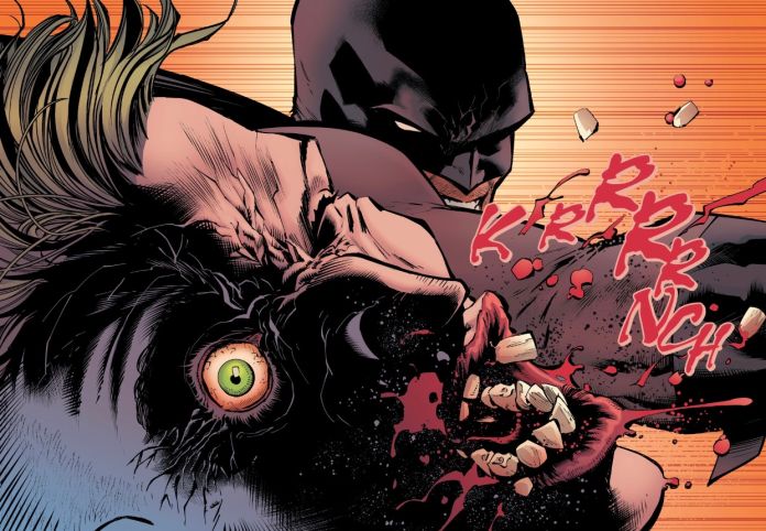 Iniziamo ovviamente con Joker, che fa di tutto per sfilare il costume a un Cavaliere Oscuro incatenato a testa in giù, ma comunque inespugnabile, grazie alle mille trappole posizionate nella sua uniforme. Testi della superstar Andy Kubert, autore della cover dell’albo, ma che stavolta cede la matita alla giovane promessa Amancay Nahuelpan, molto bravo nel rappresentare le varie espressioni del Pagliaccio del Crimine, specie quelle più rabbiose!