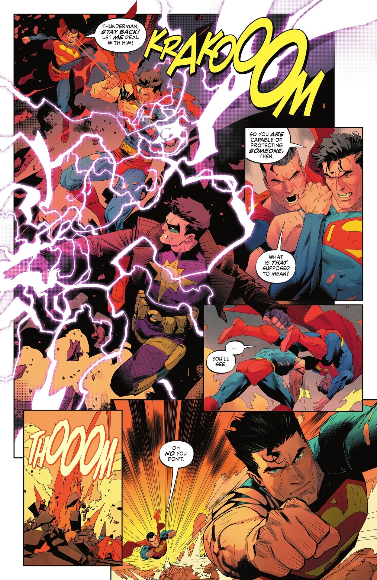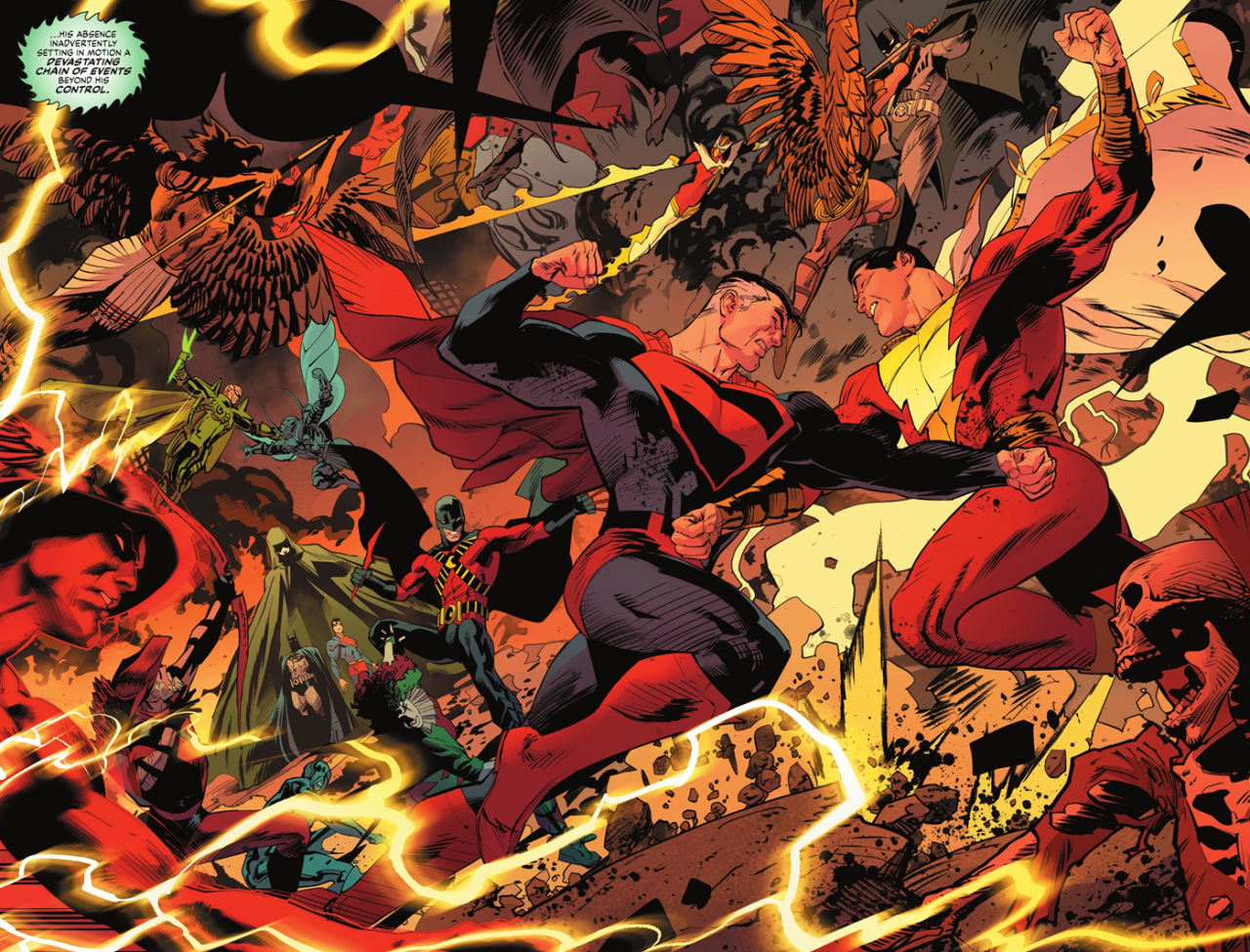 Quello che fa storcere il naso, più che altro, è il fatto che il “nostro” Superman rimanga giustamente deluso e amareggiato per il comportamento del suo doppelgänger su questa Terra, che non è stato in grado di fare il suo dovere, sia nell’essere una guida per Boy Thunder (ora diventato Thunderman) che nell’evitare la morte di migliaia di persone, ma alla fine non faccia niente per rimediare….