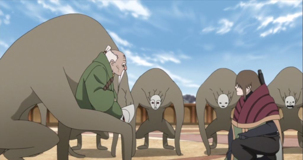 Come abbiamo già potuto vedere negli episodi precedenti, Mitsuki sta collaborando di sua spontanea volontà con gli Akuta: dopo averli seguiti senza fare storie fino al Villaggio della Foglia, disertando, di fatto, Konoha, il piccolo “figlio” del Sommo Orochimaru si è anche sottoposto a degli esami che hanno rivelato il segreto della sua longevità: all’interno del suo corpo il suo amato paparino ha inserito un vero cuore umano.