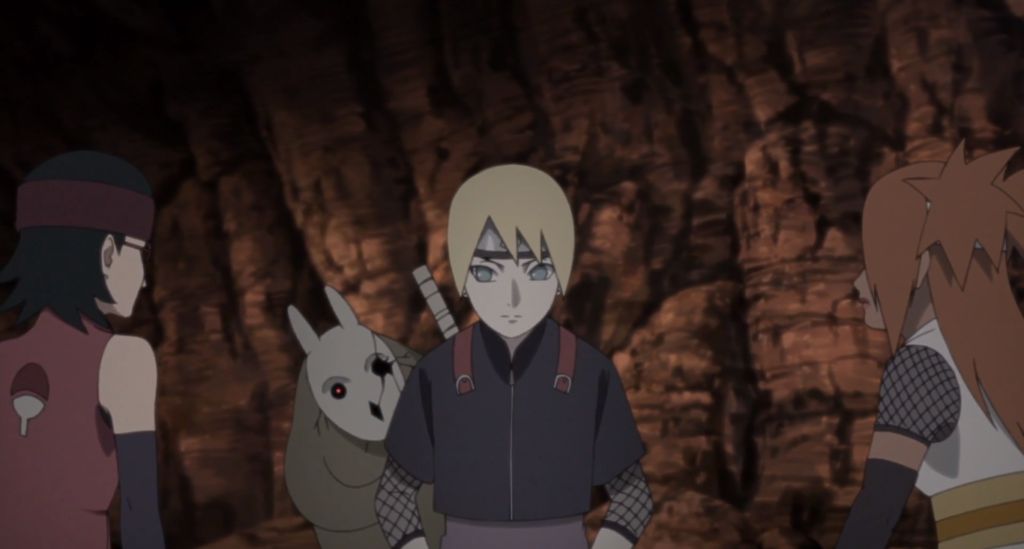 I compagni di Inojin, Sarada e Chocho sono assenti da troppo tempo: qualcosa deve essere andato storto. I ragazzi decidono così di dividersi: mentre le signorine si allontaneranno, Inojin e il suo nuovo amico Akkun resteranno nascosti ancora per un po’ nella grotta.