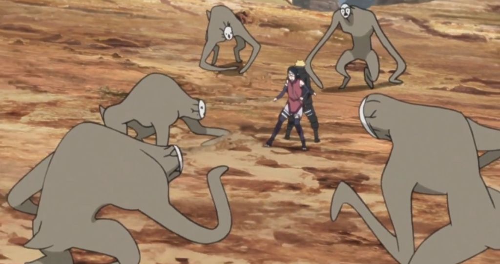 Questo particolare ci fa capire che se è vero che tutte le creature artificiali viste fino a questo momento hanno una propria volontà, è anche vero che hanno un modo di pensare e ragionare e una sfera emotiva molto differenti: mentre Mitsuki elabora ragionamenti elaborati e prova molte emozioni differenti, il suo amico/nemico Sekiei è invece una creatura molto più semplice di lui; se questo dipenda dalla loro differente natura (uno è stato creato da Orochimaru partendo dalle sue cellule, l’altro da Onoki a partire dalla terra), dal tempo vissuto sulla Terra o da altro, per il momento non è dato saperlo.