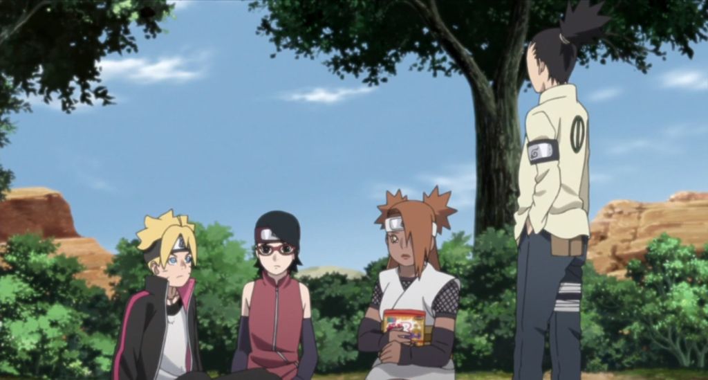 Grazie alla sua decisione e alla sua forza di volontà, anche i suoi amici e compagni di avventure (e sventure) si convinceranno a seguire Boruto, il quale ricorda anche che un certo vecchietto arzillo lo aveva invitato ad andarlo a trovare, se si fosse mai trovato dalle parti del Villaggio della Roccia…