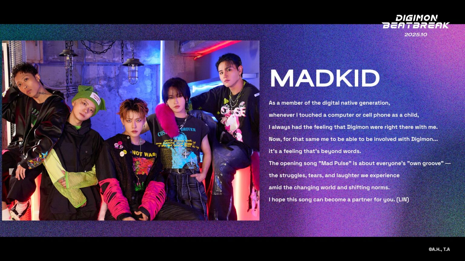I MADKID hanno raccontato l’emozione di far parte di questo progetto, spiegando come Digimon li abbia accompagnati fin dall’infanzia, quando la tecnologia cominciava a farsi spazio nella vita quotidiana.