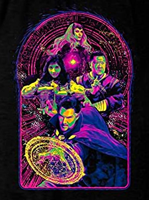 Come possiamo vedere nei nuovissimi pantaloni della tuta a tema Doctor Strange su Amazon, possiamo scorgere: Scarlet Witch, America Chavez, Wong e Doctor Strange dove li vediamo nei loro nuovi costumi.