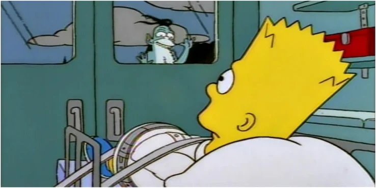 Tuttavia, il vero orrore psicologico inizia quando, insieme al resto degli studenti della Scuola Elementare di Springfield, Bart si ritrova in quello stesso autobus. Questa volta però sul serio. Inoltre, Bart è l’unico che sembra notare il malvagio gremlin che cerca di distruggere il loro autobus, e ovviamente nessuno gli crede, nonostante gli evidenti danni allo stesso. Al contrario, il comportamento paranoico di Bart viene interpretato come degno di un manicomio, e quando l’autobus arriva finalmente a scuola, Bart viene messo dentro una camicia di forza e viene lasciato in preda all’immagine mentale della testa di Flanders fra le braccia del gremlin del bus.