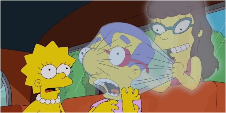 Dopo ciò, seguono le morti delle gemelle Sherri e Terri, poi della psicologa di Lisa. Alla fine, l’immaginaria Rachel soffoca Milhouse con un sacchetto di plastica. Fortunatamente, Lisa riesce a salvare i suoi genitori da una violenta e indignata Rachel che cerca di massacrarli con un mixer, tra le altre cose. Se prendiamo in considerazione tutte le morti sullo schermo, è impossibile descrivere questa scenetta con un aggettivo diverso da “tragico”.