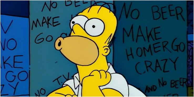 Perché, sapete, “niente TV e niente birra rendono Homer pazzo furioso“. Lo sketch è ricchissimo di riferimenti spiritosi e momenti divertenti, ma è il comportamento contorto e da posseduto di Homer che gli conferisce un’atmosfera così agghiacciante e inquietante.