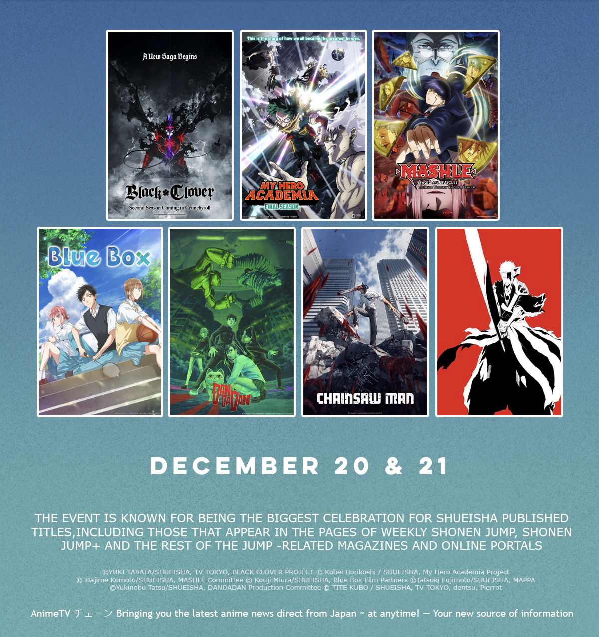 Il programma sarà diviso in tre grandi palchi: Jump Super Stage, Jump Studio e il nuovo arrivato Jump Station, pensato per unire titoli provenienti da Weekly Shonen Jump, Shonen Jump+ e Jump Square. In totale saranno presentati 42 titoli, con eventi speciali che verranno trasmessi anche in streaming sul canale YouTube ufficiale di Jump.