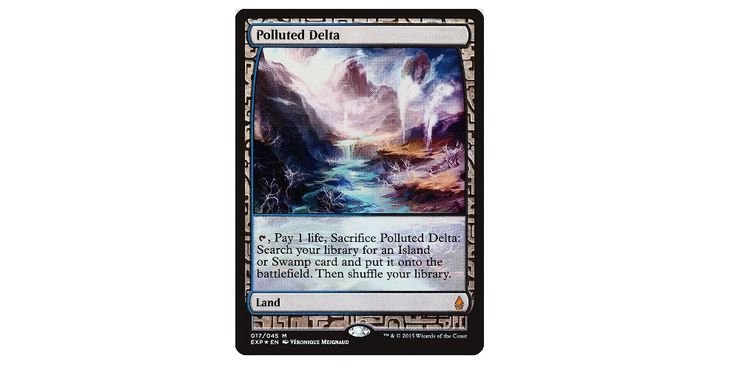 La nona carta più preziosa (sempre, lo ricordo, escluse quelle che fanno parte della Reserved List) è un’altra Terra, il Delta Inquinato. Insieme al Laghetto Bollente, questa carta può essere trovate insieme nelle build basate sui colori di Grixis, come il deck Grixis Delver in Modern. Questa Terra è essenziale anche per i mazzi Esper Control.