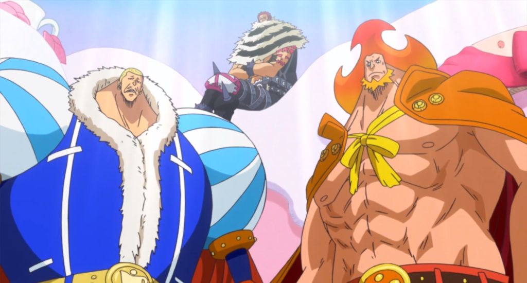 Scelta decisamente azzardata: non solo a proteggerne l’entrata ci sono Bege e i suoi uomini, ma stanno per giungere a Whole Cake Island anche tre dei più temuti Alti Ufficiali del terrificante esercito di Big Mom: si tratta di Oven, Daifuku e Katakuri, della cui potenza avrete qui un assaggio: