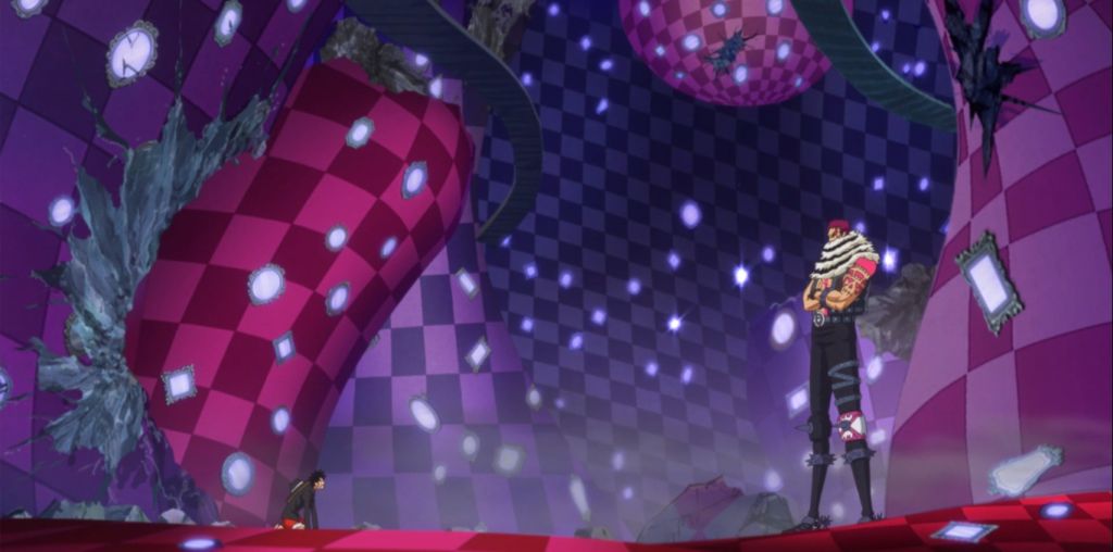 Il secondogenito di Big Mom continua a cercare di scoraggiare il nostro Capitano con le sue parole, dicendogli che non ha la benché minima speranza di batterlo. Ma questo non ha importanza per Cappello di Paglia, che avrebbe potuto non tornare mai più nel Mirro World per cercare di sfuggire a Katakuri, ma che, invece, ha scelto di farvi ritorno per sconfiggere definitivamente il Generale Sweet.