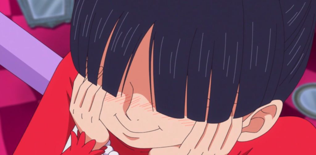 In questo episodio viene anche presentato un personaggio tutto nuovo, un nuovo membro della più che vasta famiglia Charlotte: si tratta della piccola Flampe, una ragazzina di soli 15 anni che è Presidente del Katakuri Fan Club e Capitano della Squadra Suicida. In questa sua breve presentazione, vi renderete conto del fatto che la piccolina sia in realtà una creatura decisamente subdola ed egocentrica: scelta dai suoi fratelli maggiori come la sorellina preferita, Flampe è molto popolare nella sua famiglia/ciurma, e sembra davvero molto legata al suo fratellone Katakuri, tanto da essere la Presidente del suo Fan Club!
