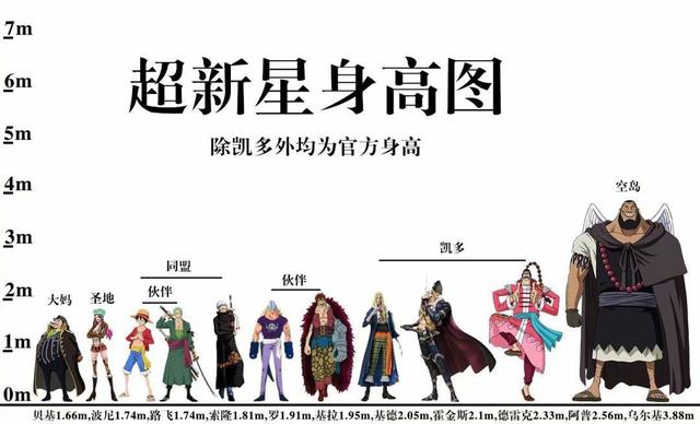 Secondo la tabella, per esempio, l’altezza ufficiale di Luffy è di poco superiore a 1 metro e 70 centimetri (174 cm), il che corrisponde alla sua reale rappresentazione nel manga, che è un po’ più alta di Nami, che è indicata, nella tabella, come 1 metro e 70 centimetri (170 cm), ma più bassa di Sanji e Zoro, che sono entrambi indicati in un valore che si aggira intorno a 1 metro e 90 centimetri (191 cm).