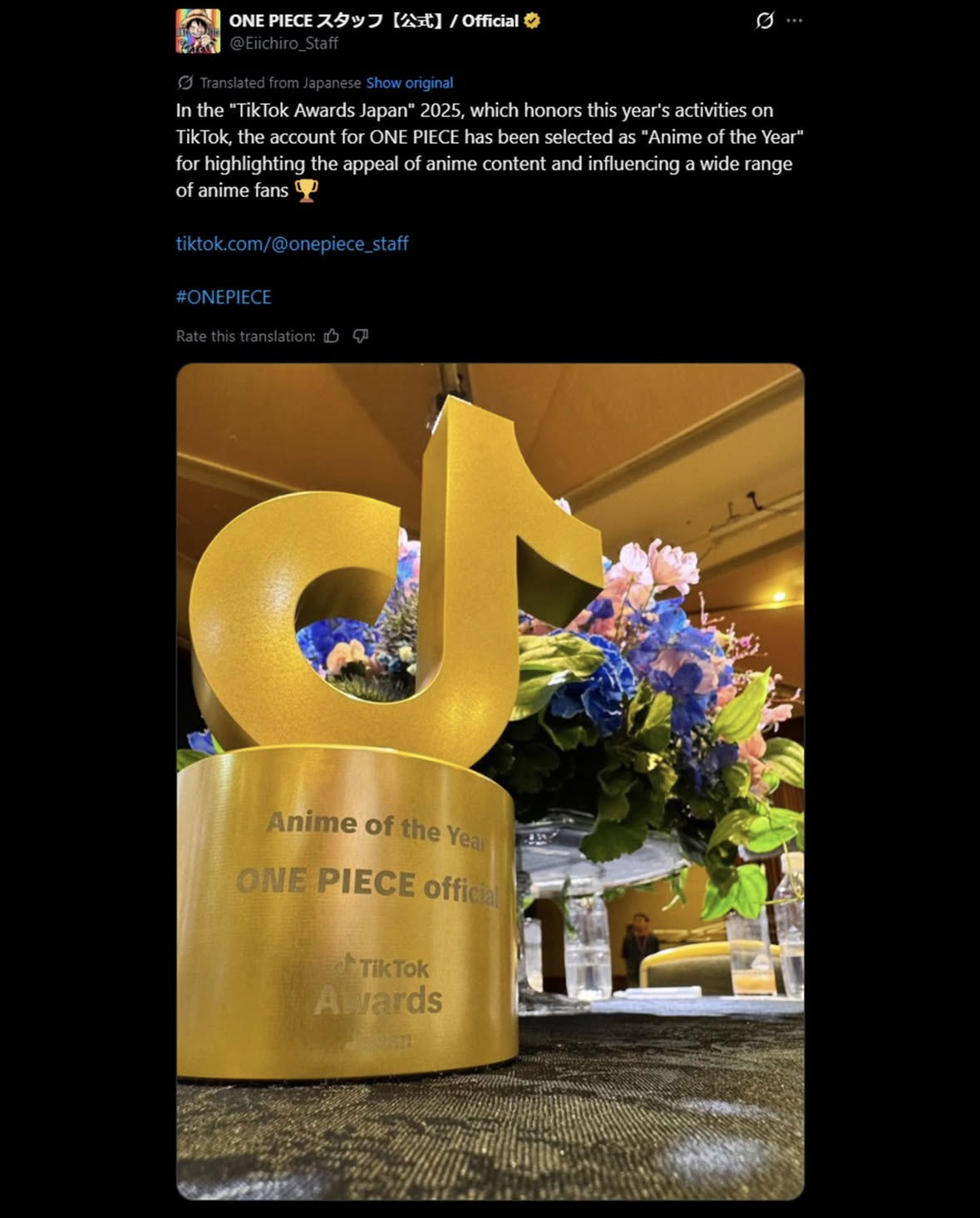 One Piece vince l’Anime of the Year ai TikTok Awards Japan 2025