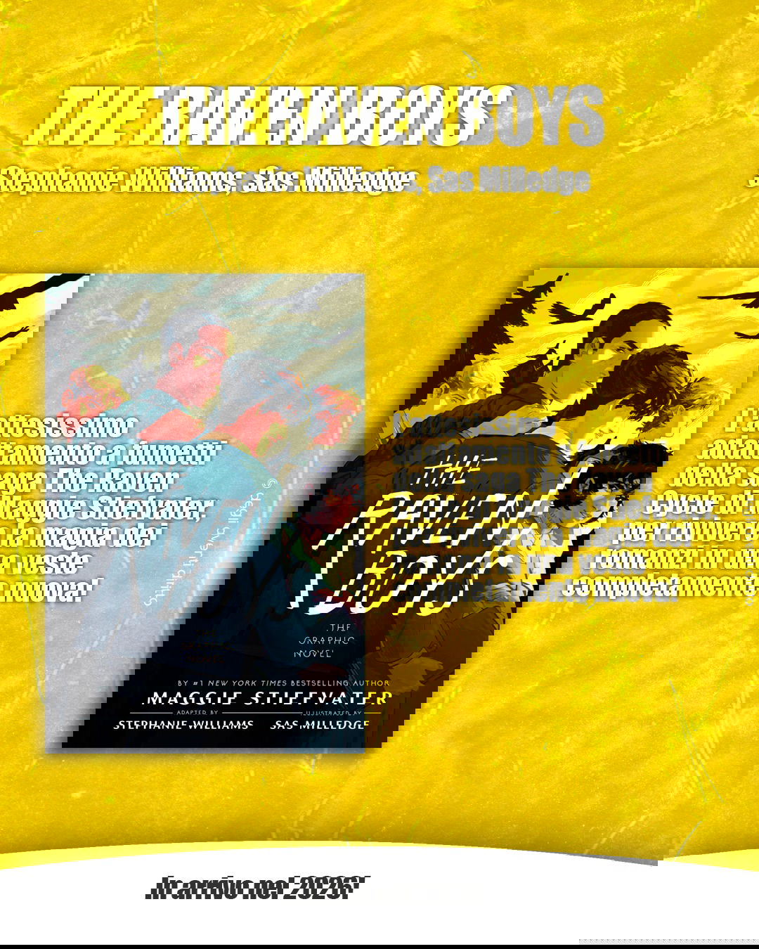 Tra gli annunci più attesi c’è anche The Raven Boys, l’adattamento a fumetti della celebre saga The Raven Cycle di Maggie Stiefvater, scritto da Stephanie Williams e disegnato da Sas Milledge. Una nuova occasione per riscoprire la magia e i misteri dei romanzi in una veste completamente inedita.