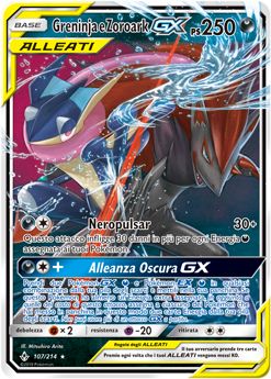 A differenza della colorata unione precedenti, Greninja e Zoroark sono legati dal nero del tipo Buio in questa carta da 250 PS: con due energie, una buio e una incolore, il duo è capace di infliggere 30 danni più 30 danni in più per ogni energia Buio assegnata ai Pokemon del giocatore. Distribuendo sapientemente le Energie e con una buona struttura di base, il duo è capace senza problemi di infliggere una grande quantità di danni.