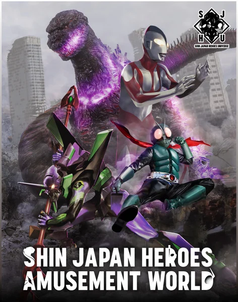 Il progetto di collaborazione Shin Japan Heroes Universe tra Godzilla, Evangelion: 3.0+1.0: Thrice Upon A Time (Shin Evangelion Gekijō-ban :||), Shin Ultraman e Kamen Rider ha annunciato il mini parco tematico “Shin Japan Heroes Amusement World”, che aprirà quest’anno in tre negozi Bandai Namco in Giappone per un periodo limitato. Gli spazi offriranno attrazioni interattive e giochi basati sulle quattro proprietà.