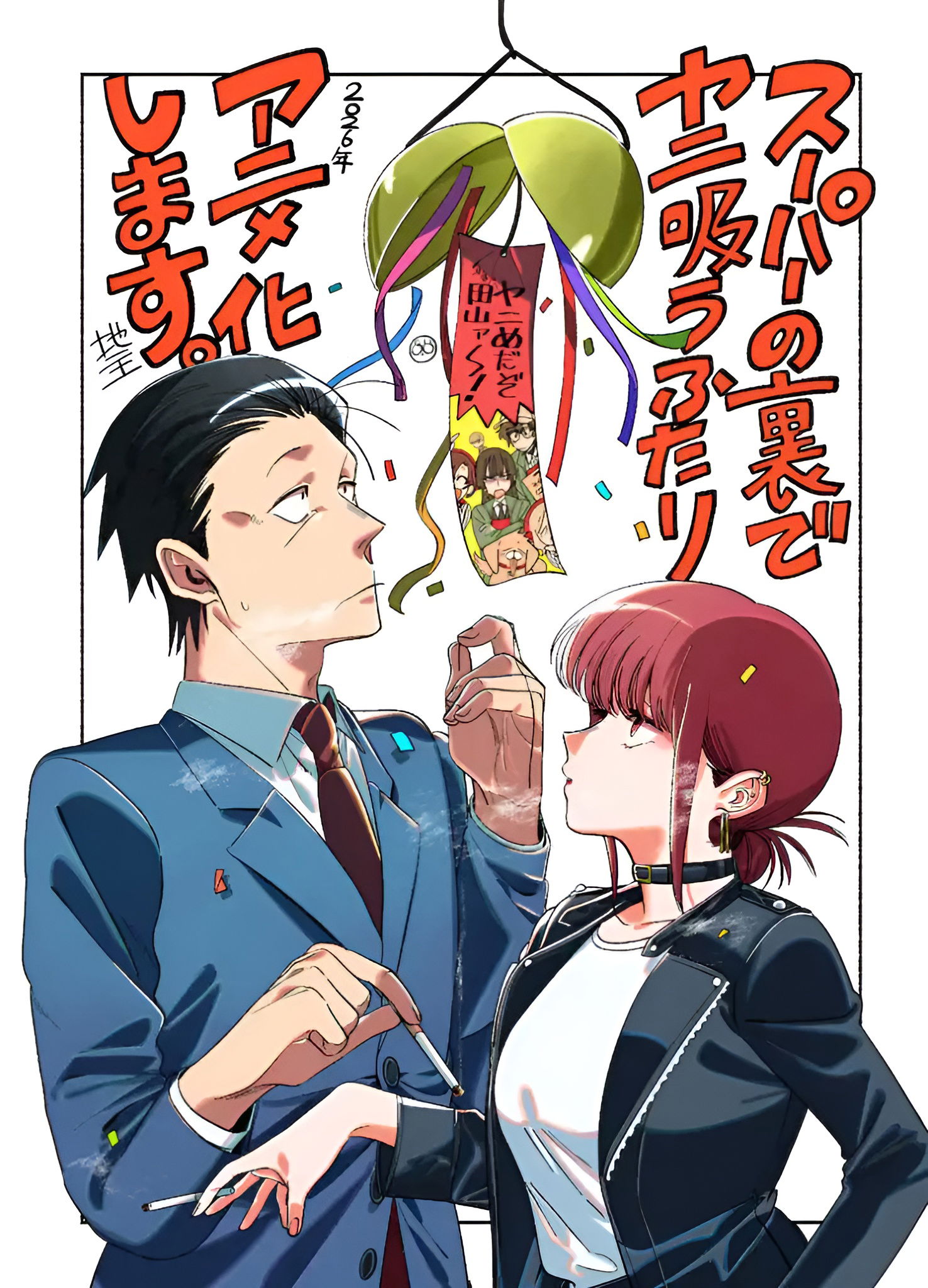 È stato annunciato l’adattamento anime di Smoking Behind the Supermarket with You, manga di Jinushi che si è ritagliato negli ultimi anni un seguito fedele grazie al suo modo quieto e disarmante di raccontare routine, piccoli stacchi dal lavoro e nascosti momenti di connessione umana. L’uscita della serie è prevista nel 2026; insieme alla notizia è stata diffusa anche un’illustrazione celebrativa firmata dall’autore.