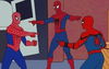 Ecco le due immagini del meme e della versione ricreata dai tre interpreti di Spider-Man: