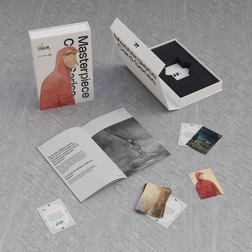 Ogni cofanetto è pensato per essere un oggetto da collezione: uno slipcase trasparente personalizzato, un cofanetto rigido con chiusura magnetica, una guida con intervista esclusiva all’autore e, soprattutto, le 36 illustrazioni stampate su carta di pregio da 450gr, con firma dell’artista stampata a caldo in argento e un commento sul retro.