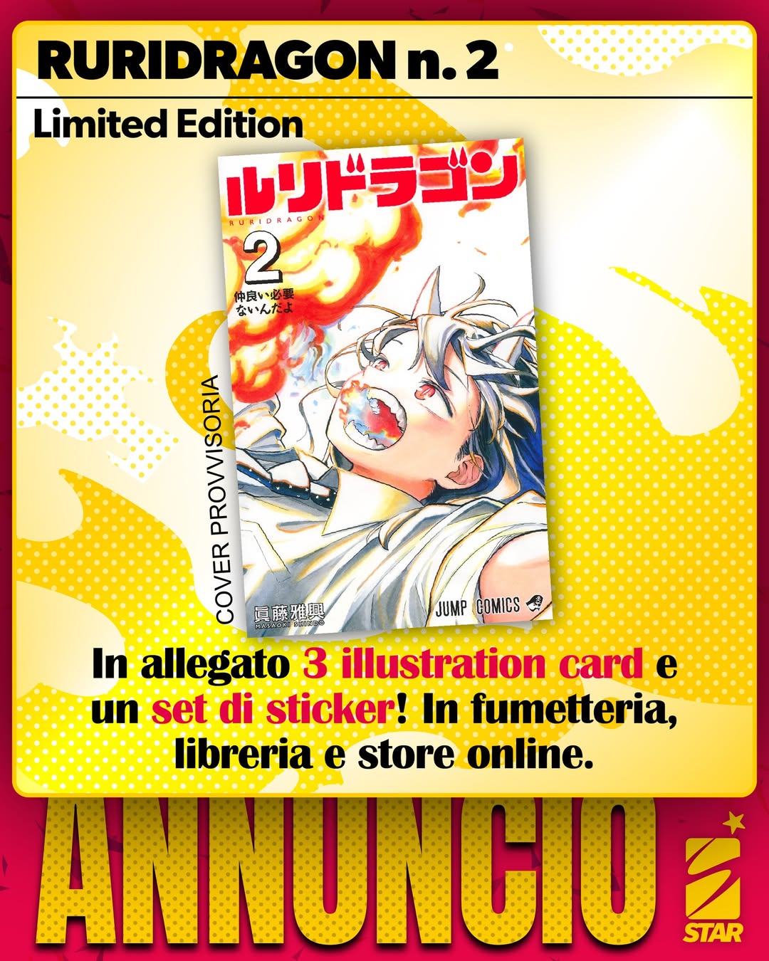Tra i titoli più attesi dai lettori italiani c’è senza dubbio RuriDragon, il manga fantasy che ha conquistato migliaia di fan su Jump+ e sui social. La serie, diventata virale grazie al suo stile fresco e al tono ironico con cui racconta la vita scolastica di una ragazza con sangue di drago, è pronta a debuttare anche in Italia grazie a Edizioni Star Comics.